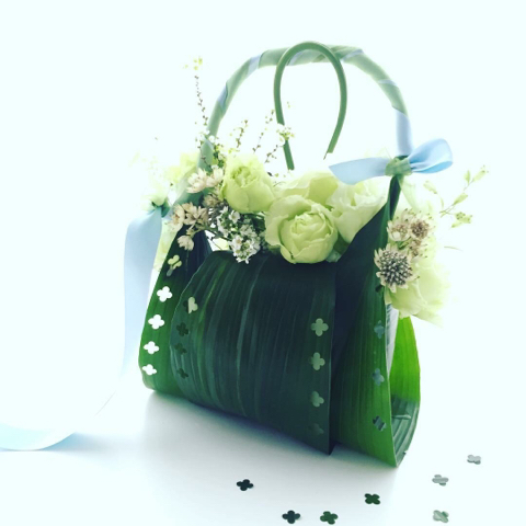 葉蘭のハンドバッグアレンジ 千歳船橋 人気の葉蘭のバックアレンジ