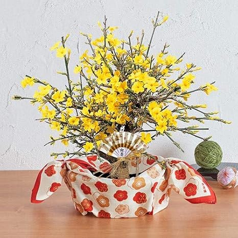 Amazon 日比谷花壇 お正月 花鉢 黄梅 風呂敷包み 新年 迎春 年末